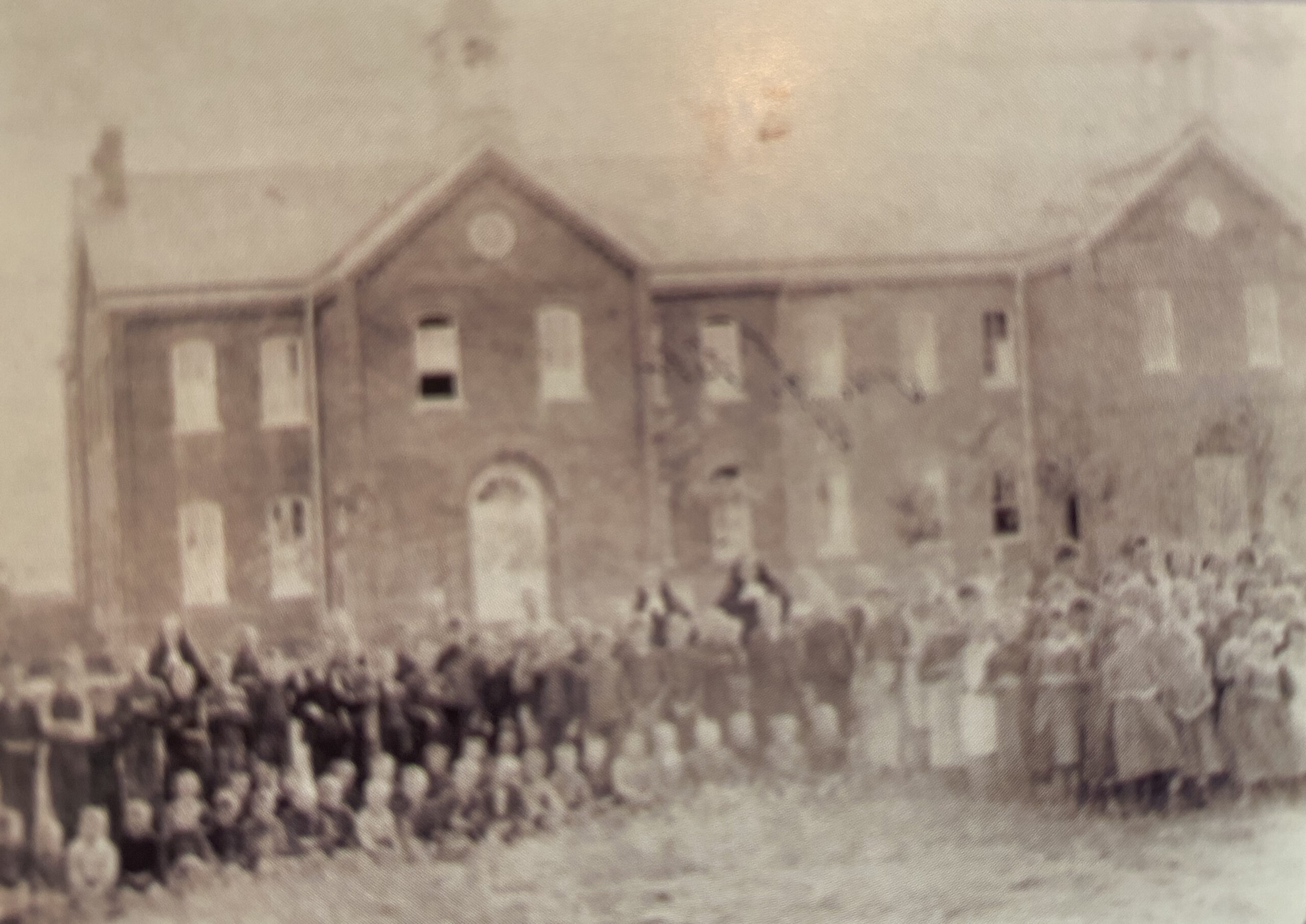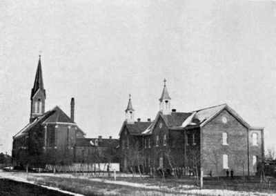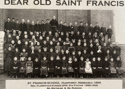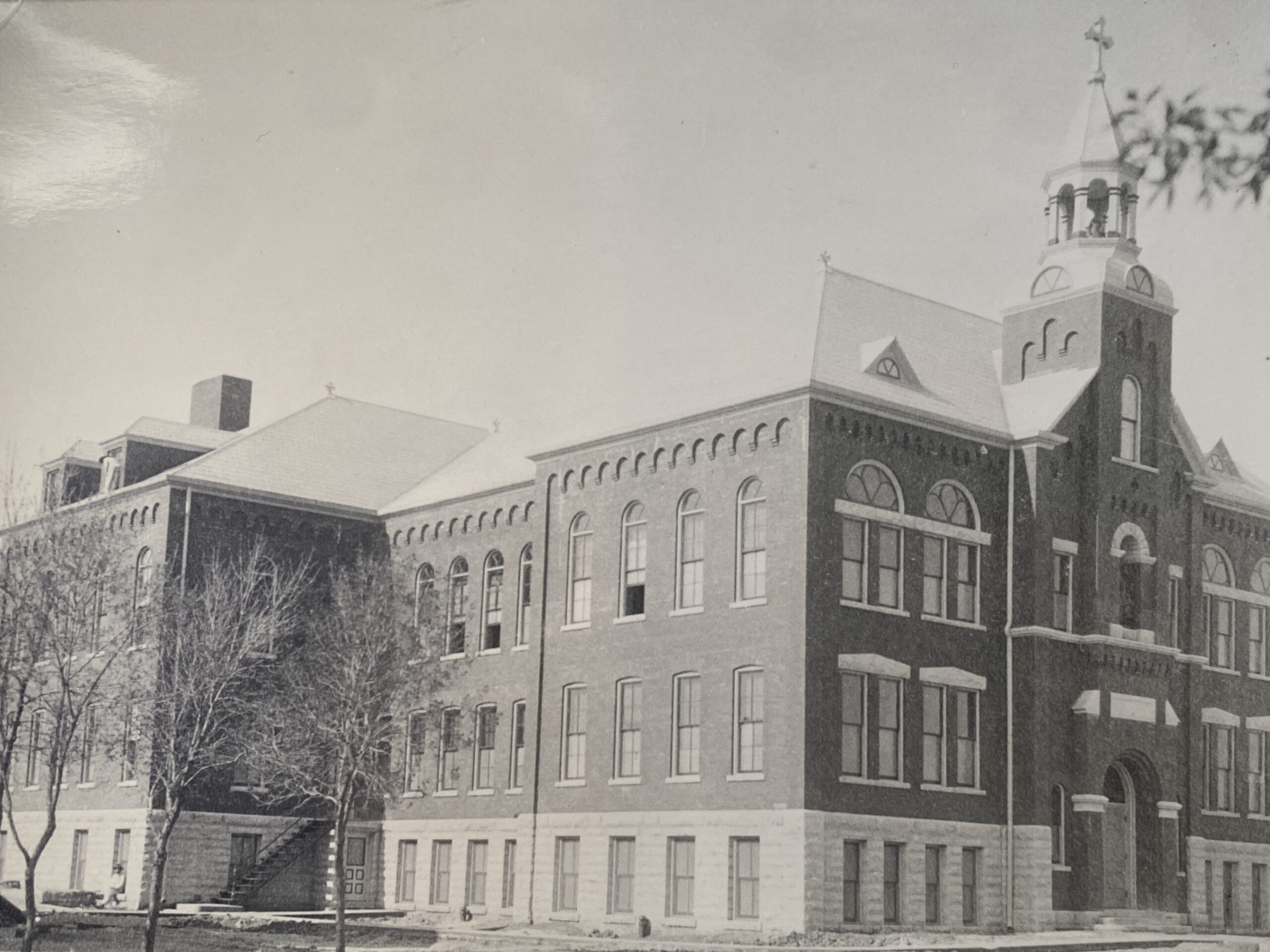 The first school, built in 1884, was remodeled and turned into a Sisters’ house and a place for school children to board. At the time, the school had only seven grades.
