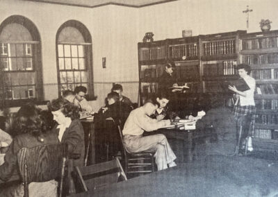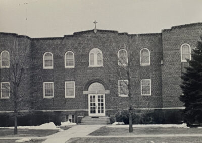 The sisters moved into the basement of the grade school to permit the razing of the Sisters’ house by the parishioners. By January 16, 1924, the new convent was completed and the sisters took possession of it on February 9. This building was dedicated on May 29. In 1929, a porch was built over the rear entrance to the Sister’s Convent. In the fall of 1938, the old boarder’s dormitory on the second floor of the Sisters’ Convent was made into a library for St. Francis High School.